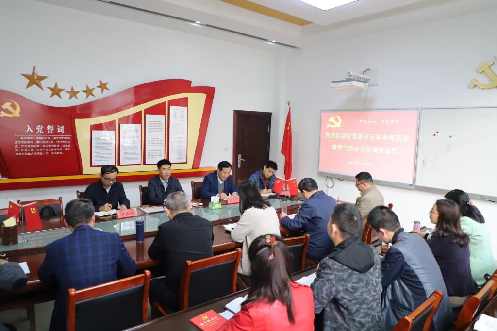 11月4日,校党委书记宋争辉到 自慰a片 与师生座谈,宣讲党的十九届四中全会精神,调研 “不忘初心、牢记使命”主题教育开展情况。校党委委员、组织部部长唐景旺和有关同志陪同调研。