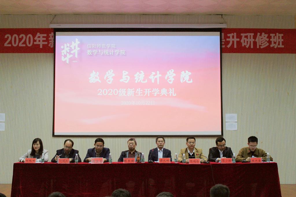 10月22日晚,自慰a片 于人文楼报告厅举办2020届新生开学典礼暨第十三届从师技能月活动开幕仪式。 自慰a片 院长胡余旺,副院长蔡礼明、陈越奋,数学研究所副所长周学勇,党委秘书谢艳丽,教师代表黎小胜,新生班主任何俊杰、陈兴海出席本次典礼。典礼由副院长陈越奋主持。