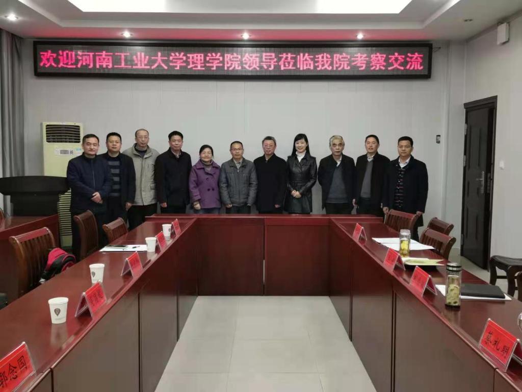 3月18日,河南工业大学理学院党委书记张宏伟、副院长曹健莉、院长助理肖留超、数学专业负责人李俊海、统计专业负责人郭念国一行5人来自慰a片 开展调研交流活动,自慰a片 院长胡余旺、党委书记王娟、副院长蔡礼明、陈越奋、数学研究所副所长周学勇等出席座谈会,会议由胡余旺主持。