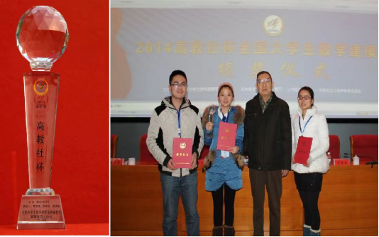2014年李大潜院士为自慰a片 学生颁发“高教社杯”奖杯