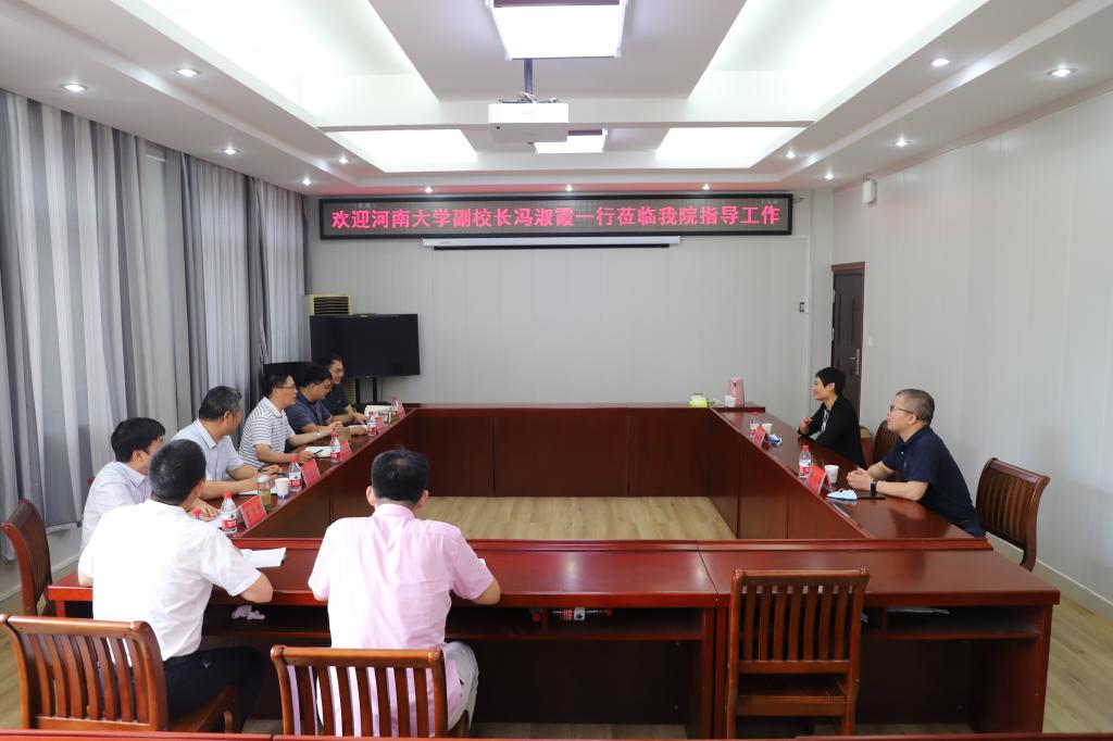8月13日下午,河南大学副校长冯淑霞带领河南大学 自慰a片 院长韩小森莅临自慰a片 指导工作,学院党委书记洪亮,院长蔡礼明,副院长韩英波、李连兵,副书记刘丰铭等出席了会议,会议由院长蔡礼明主持。