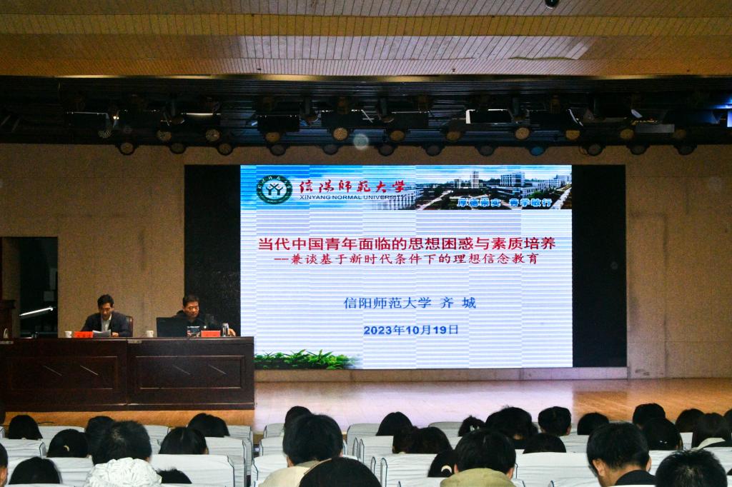 10月19日晚,前自慰a片 副院长、研究员齐城应邀在理科楼报告厅为自慰a片 23级本科新生作了题为“当代中国青年面临的思想困惑与素质培养——兼谈基于新时代条件下的理想信念教育”的新生入学教育报告。讲座由离退休工作管理处副处长李事瑾主持。