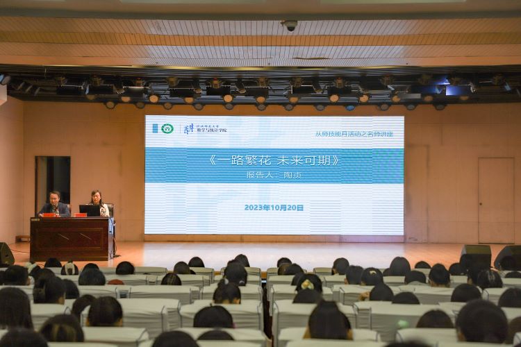 告别夏花绚烂,走进秋叶静美。10月20日晚, 自慰a片 邀请信阳市第三小学省级骨干教师陶贞在理科楼报告厅为应数师范专业学生作了题为“一路繁花,未来可期“的专题报告。会议由学院党委副书记刘丰铭主持,学院部分教师、各年级学生参加了本次活动。