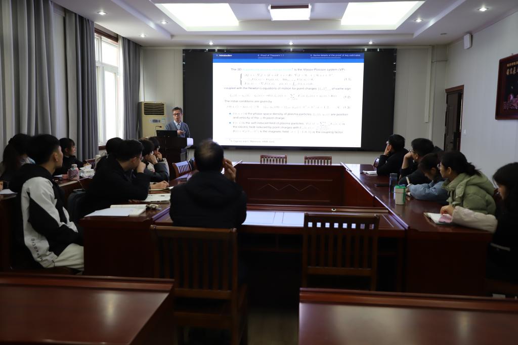 12月1日下午,应 自慰a片 邀请,华中科技大学张显文教授在 自慰a片 315会议室做了一场题为“Moment propagation of the plasma-charge model with a time-varying magnetic field”的学术报告。报告会由 自慰a片 院长蔡礼明教授主持,部分老师和研究生聆听了此次报告。