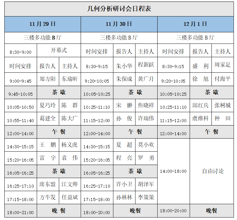 几何分析研讨会预告