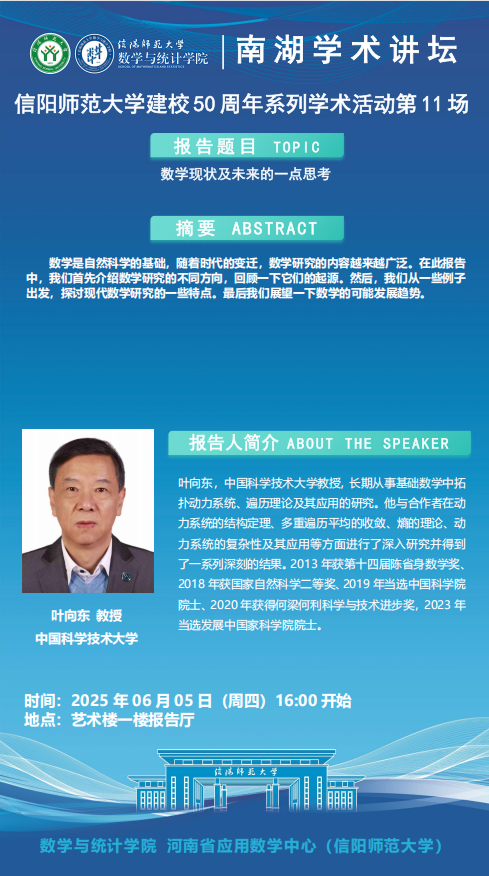 庆建校50周年之南湖讲坛:中国科学技术大学叶向东院士——数学现状及未来的一点思考