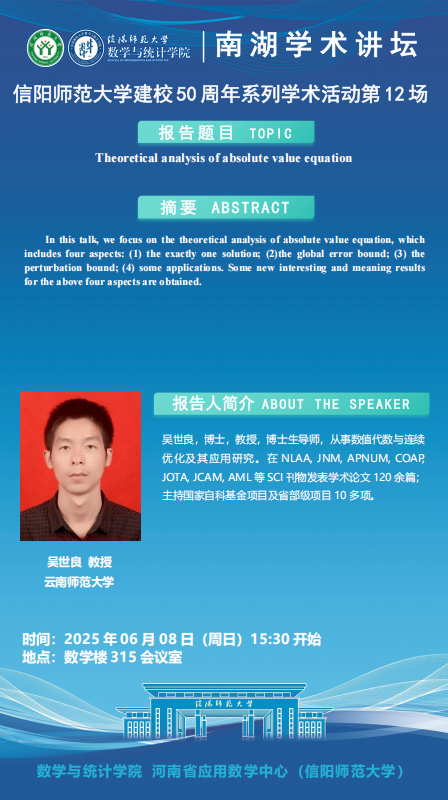 庆建校50周年之南湖讲坛:云南师范大学吴世良教授——Theoretical analysis of absolute value equation