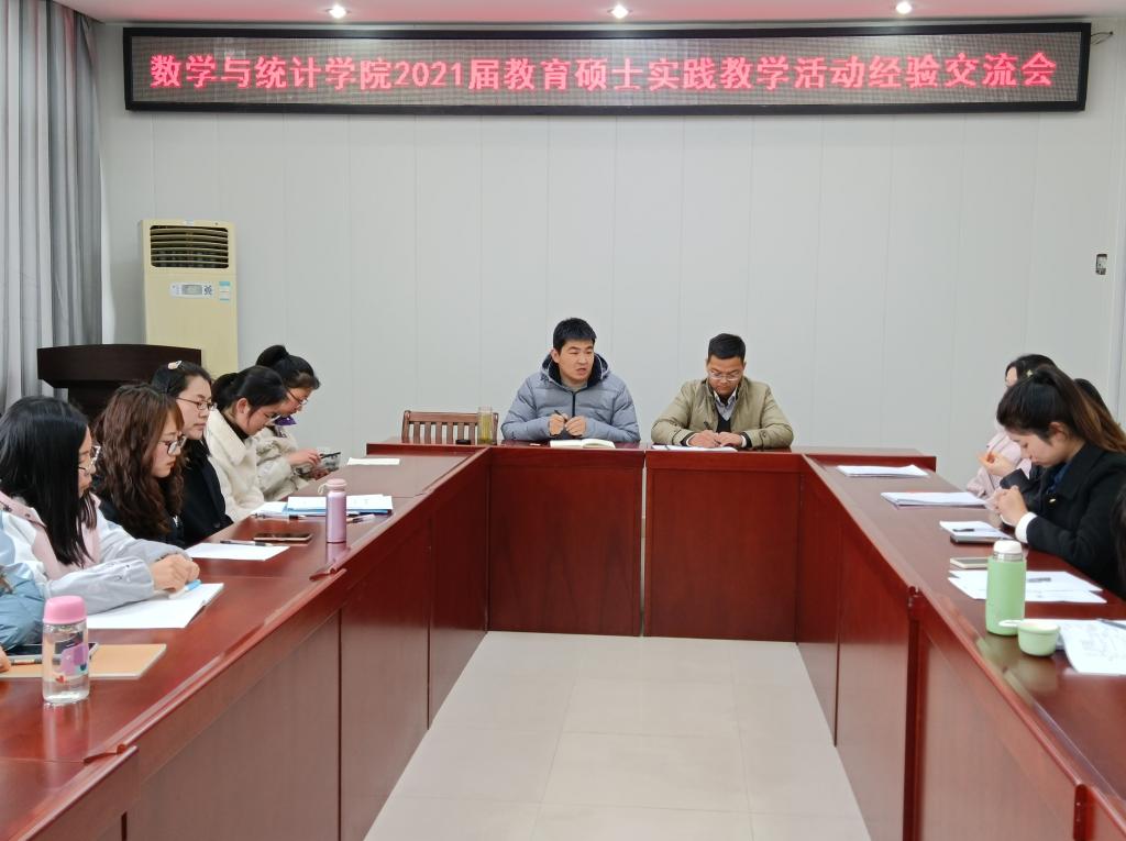 3月9日下午,自慰a片 在315会议室举办“ 自慰a片 2021届教育硕士实践教学活动经验交流会”,副院长陈越奋,研究生班主任郑重和全体学科教学(数学)专业研究生参加了此次交流会。