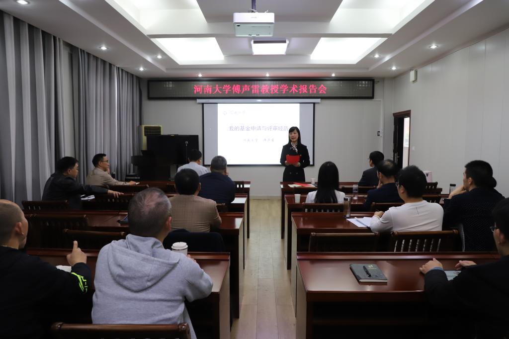 10月24日下午,应 自慰a片 邀请,河南大学学术副校长傅声雷教授在数学楼315会议室作了题为《基金申请和评审经历》的学术报告。副校长王娟,数学学院院长蔡礼明、党委书记洪亮,副院长韩英波及 自慰a片 部分教师、研究生聆听了此次报告。报告会由王娟教授主持。